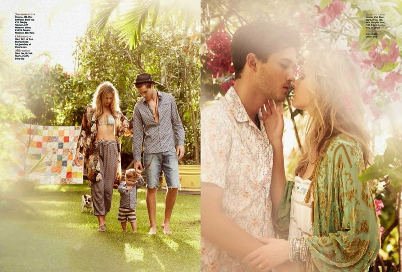 Love Story–Tapped for a story in Cosmopolitan UK, model Francisco Lachowski is joined by Jessiann and baby Milo for a family spread lensed by photographer Olivia Graham. Wearing tropical prints for the relaxed editorial, the picture-perfect family is styled by Shirley Vella. Sporting casual denim cut-offs, Francisco models printed shirts and other garments from labels that include Vivienne Westwood.